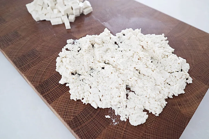 남은 1/2은 물기를 꽉 짜고 으깨주세요.