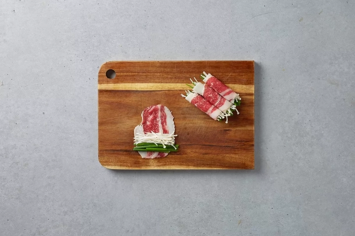 [재료]: 차돌박이 200g, 부추 1줌, 팽이버섯 1/2개,