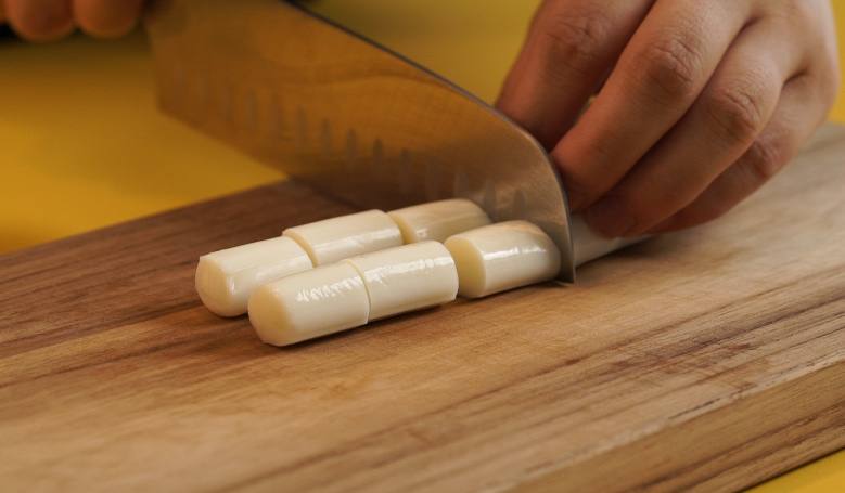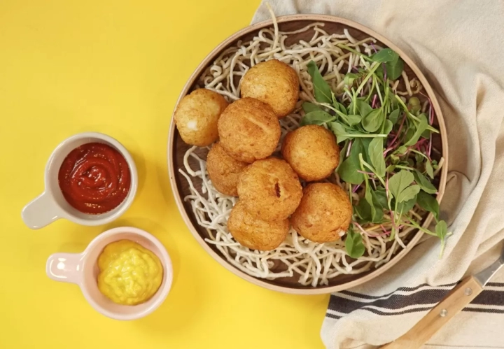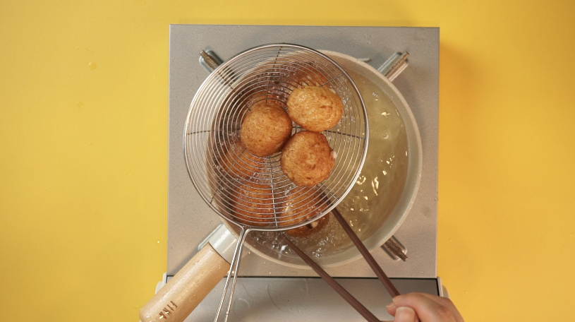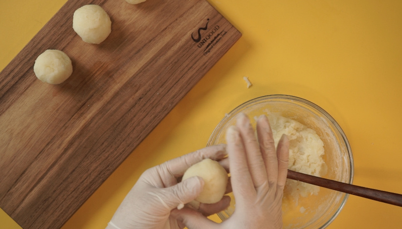 감자반죽에 치즈를 넣고 동그랗게 만들어주세요.