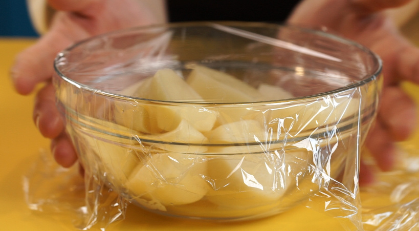 볼에 물 1큰술을 넣고 랩을 씌워 전자레인지에 5분간 돌려주세요.