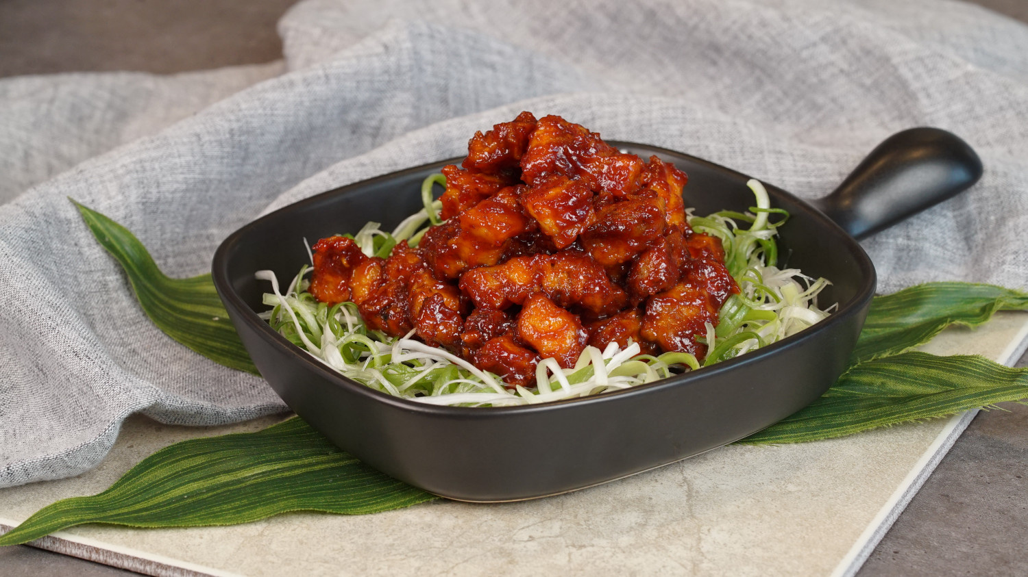 고기가 매콤달콤 소스랑 너무 잘 어울리고