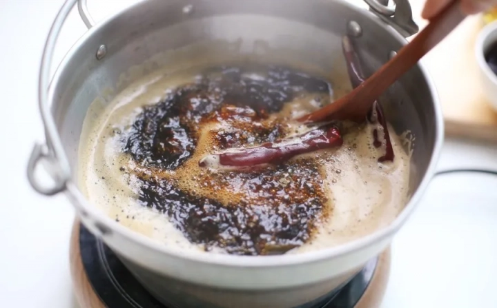 간장을 오래 끓으면 특유의 간장 짠내가 날수 있기에