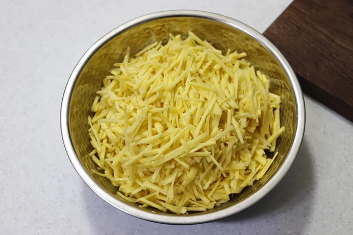 중앙에 씨앗을 제거하고 채를 썰어주세요.