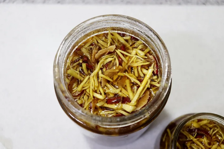 [재료]: 생강 1KG, 말린대추 200g, 황설탕 600g, 꿀 300g