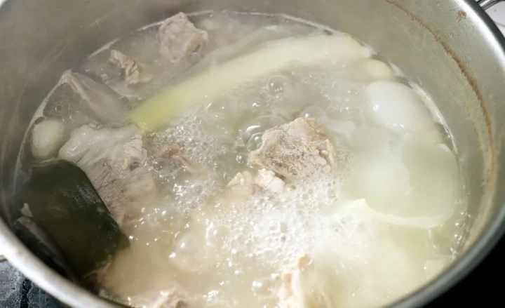 냄비에 등뼈가 잠길 정도로 물을 넉넉하게 붓고