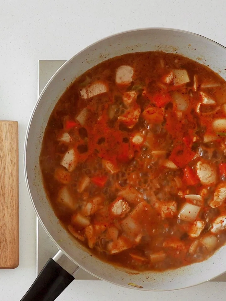 물 1.5컵을 넣고 양념을 모두 넣어준 뒤 10분 정도 끓여주세요.