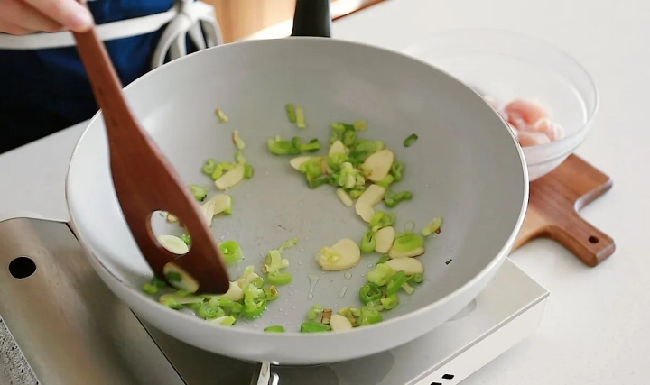 마늘과 대파를 넣고 볶아 기름을 내주세요.