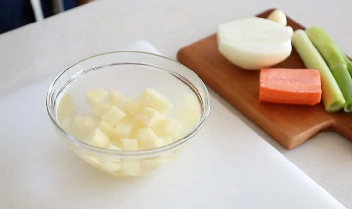 찬물에 10분 정도 담가 전분을 제거해주세요.