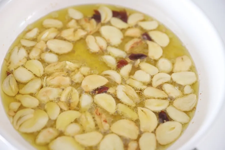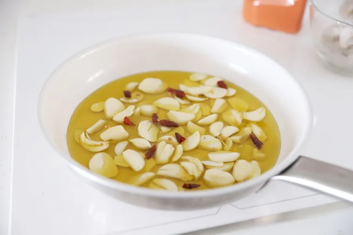 올리브오일이 끓으면서 마늘향이 서서히 올라오고