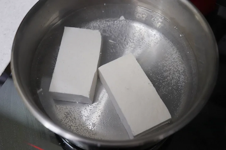 두부는 끓는 물에 1분 정도 데쳐주세요.