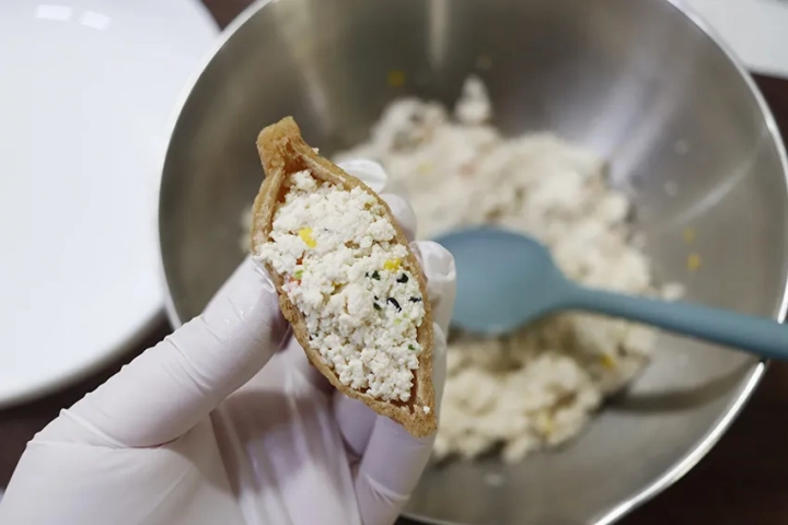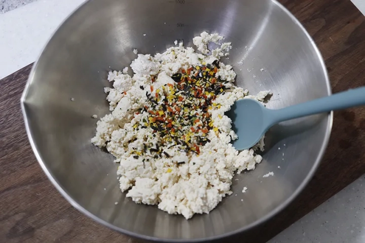 [재료]: 두부 1모, 시판유뷰초밥재료