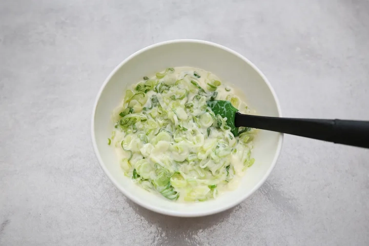 [소스재료]: 크림치즈 3큰술, 마요네즈 2큰술, 연유 2큰술