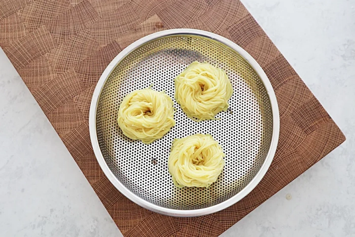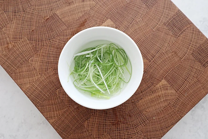 대파는 곱게 채를 썰어 찬물에 담가 매운맛을 우려내주세요.