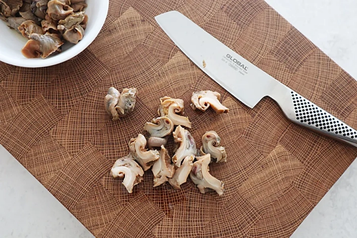 [재료]: 골뱅이 1캔, 양파 1/2개, 오이 1/2개,