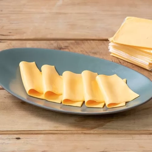 슬라이스 형태의 가공 치즈는 천연치즈의 숙성을 억제하기 위해 자연치즈를 한번 끓인것으로 탈지분유와 버터를 첨가하여 단백질과 지방을 보충한것이라고 합니다.