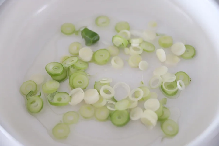 팬에 기름을 넉넉히 두르고 파를 볶아 파기름을 내주세요.
