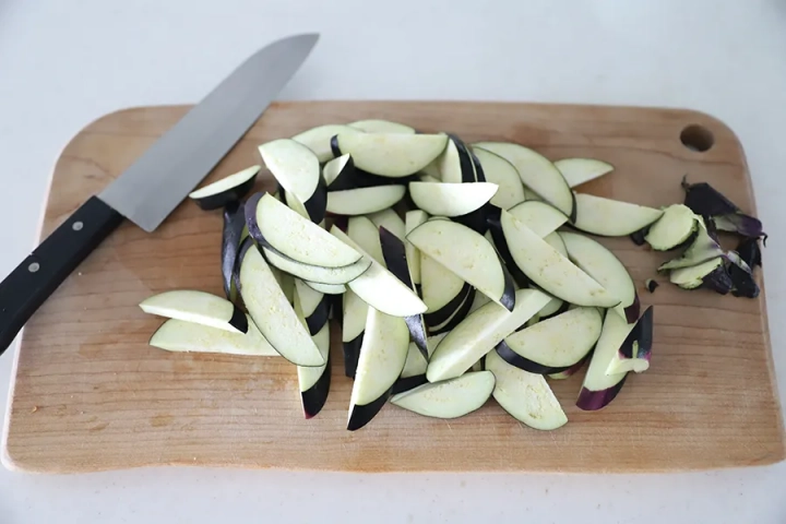 가지는 모양 상관없이 도톰하게 썰어주세요.