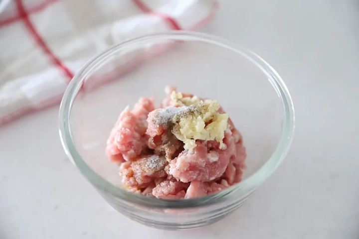 돼지고기 다짐육은 밑간재료에 버무려 밑간을 해주세요.