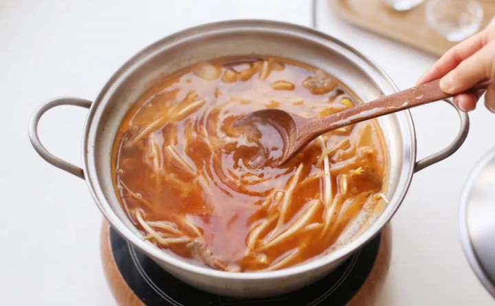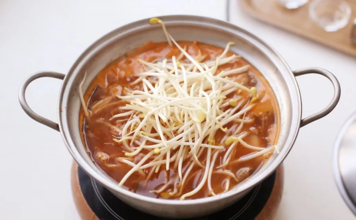 콩나물이 국물에 가라앉도록 하고 뚜껑을 열고 끓여주세요.