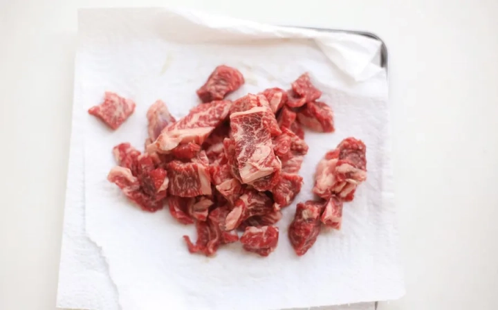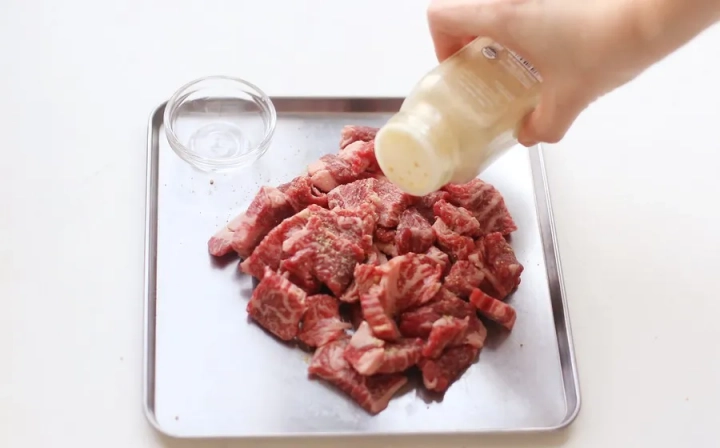 양지는 한입 크기로 자르고 핏기를 제거해주세요.