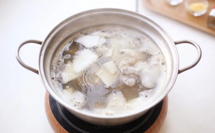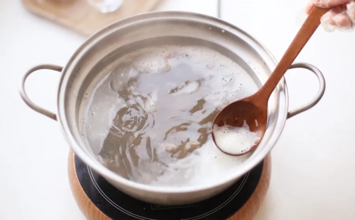무가 익어서 떠오르면 뚜겅을 열고 다시 거품을 정리해주세요.