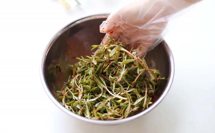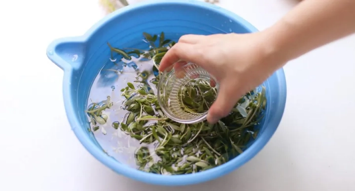 물에 식초 1큰술을 더하고 돌나물을 가볍게 흔들어서 씻어주세요.