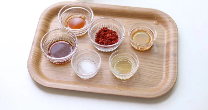 [양념재료]: 간장 1큰술, 고춧가루 1.5큰술,