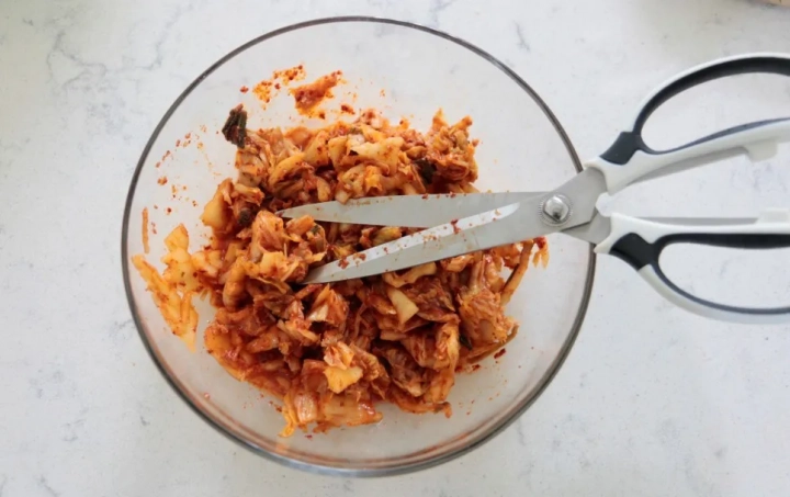 김치를 잘게 잘라주세요.