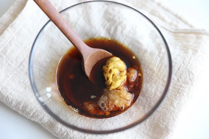 [소스재료]: 연겨자 1큰술, 식초 1큰술, 매실청 1큰술,