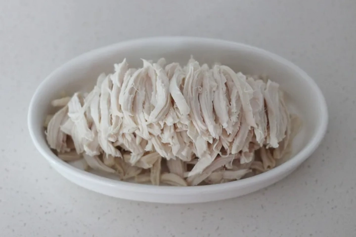 삶아낸 닭가슴살은 먹기 좋게 찢어주세요.