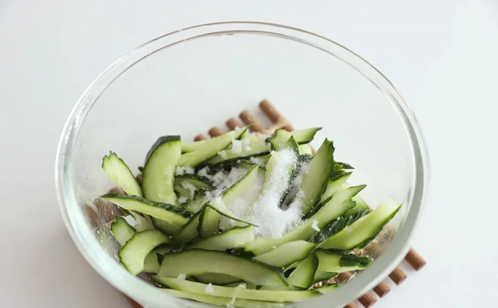 바락바락 치대주면서 5분 정도 절이고 물로 헹구고 물기를 제거해주세요.