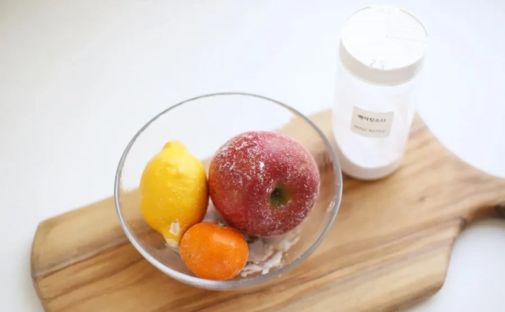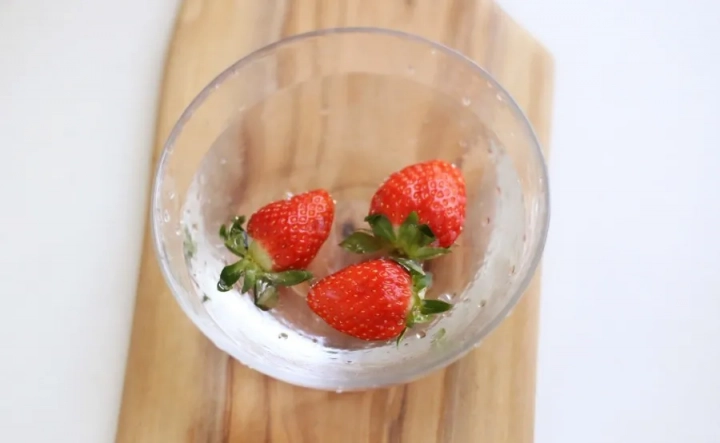 딸기는 식초를 약간 넣고 물에 담갔다가 씻어주세요.