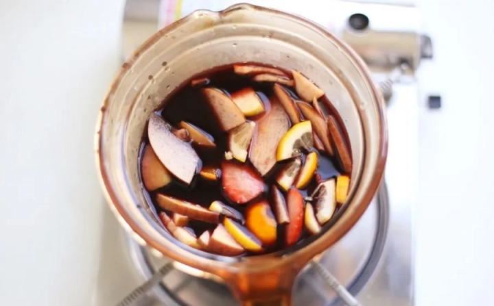 완성되면 과일을 걸러내고 와인만 담아주시면 돼요.