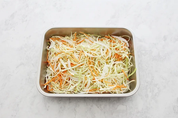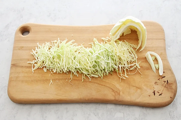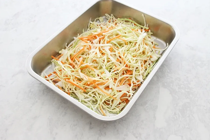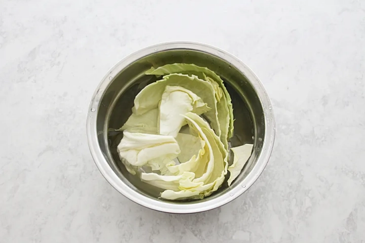 양배추는 식초 2큰술을 푼 물에 담갔다가 흐르는 물에 깨끗하게 씻어주세요.