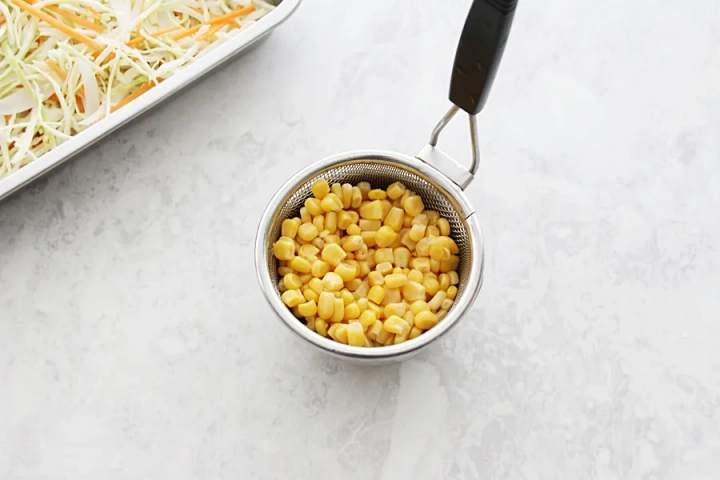 스위트콘은 끓는 물을 부어 첨가물 등을 제거하고 물기를 제거해주세요.