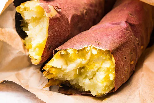 고구마의 천연 당분은 혈류로 천천히 방출되어 피로와 체중 증가와 관련된 혈당 스파이크를 일으키지 않기 때문에 균형 잡히고 규칙적인 에너지를 공급한다고 하는데요. 식이섬유가 풍부하고 혈당지수가 낮으며 음식물을 천천히 소화시켜 포만감을 주고 또한 열량이 낮고 영양분이 풍부하여 흰쌀 대신 탄수화물 섭취가 가능한 식품이라고 합니다.