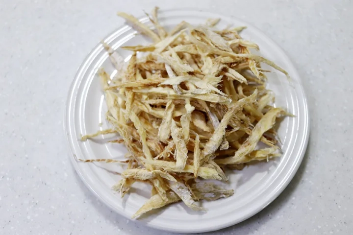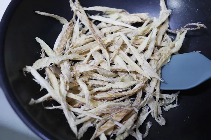 황태채를 마른 팬에 5분 정도 볶아주세요.