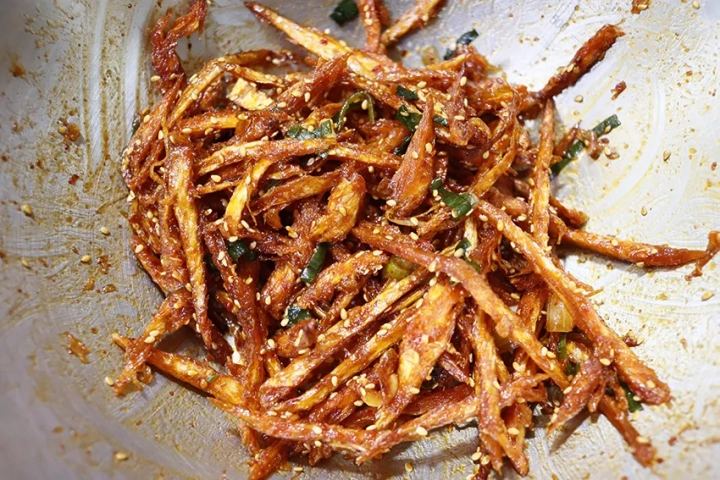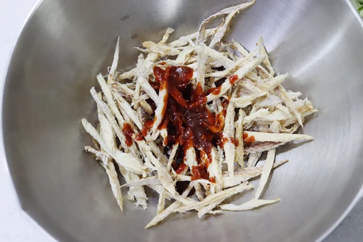 볶은 황태채는 좀 더 쫄깃쫄깃해요.