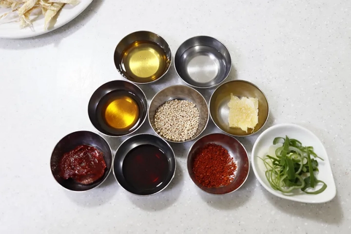 진간장 1큰술, 다진마늘 1/2큰술, 고춧가루 1/2큰술, 참기름 1큰술