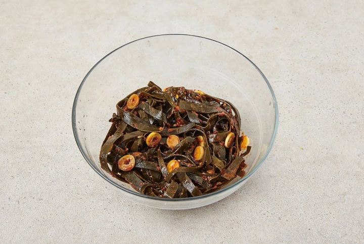 다시마는 물에 불렸다가 굵게 채를 썰어주세요.