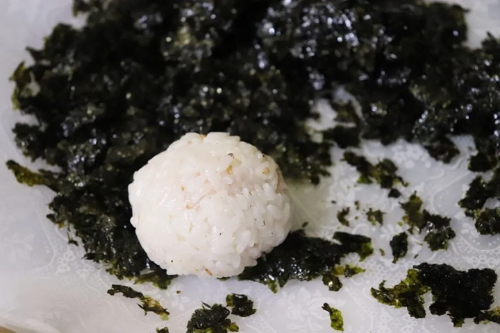 동그랗게 만들고 김가루에 여러번 굴려주면 완성~