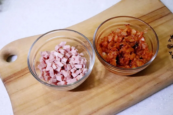 김치는 속재료 털어내고 잘게 썰어주세요.