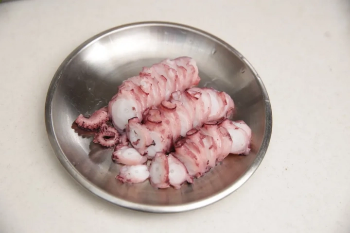 [재료]: 문어 150g, 오이 1개, 상추 2장, 깻잎 4장,