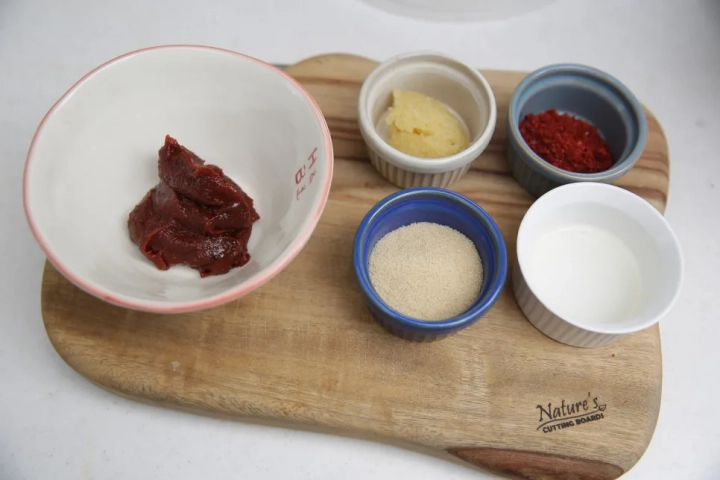 다진마늘 1큰술, 고춧가루 1큰술, 참기름 1큰술, 통깨