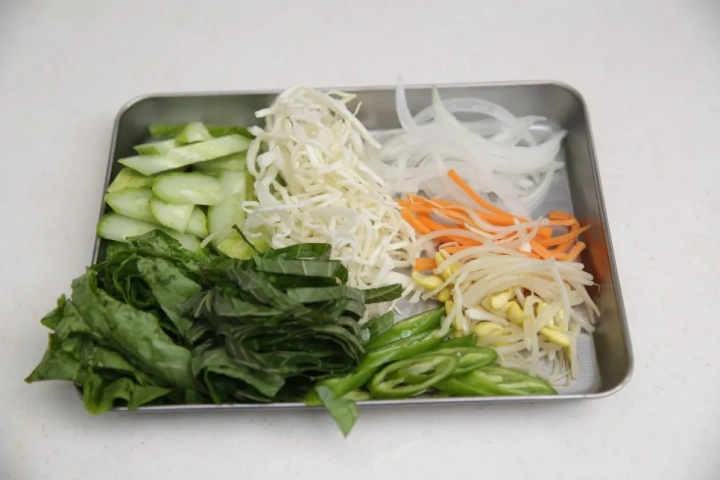 청고추 1개, 양배추, 양파 1/4개, 당근 1/4개, 콩나물 약간
