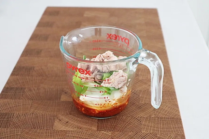 참치는 기름을 따라내주세요.