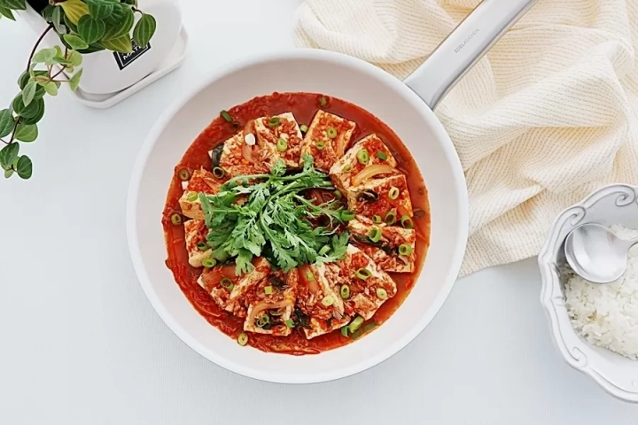 담백한 두부와 얼큰한 양념장이 어울리면서