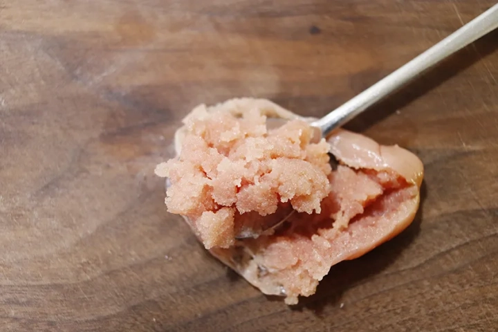 명란젓은 껍질을 분리하여 알맹이만 준비해주세요.