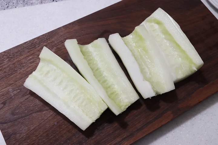 씨를 제거한 노각은 먹기 좋은 크기로 썰어주세요.