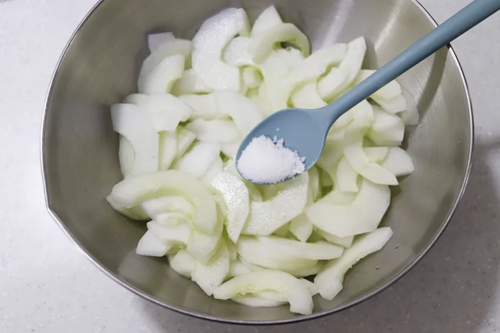 썰어둔 노각에 소금을 1/2큰술을 더해